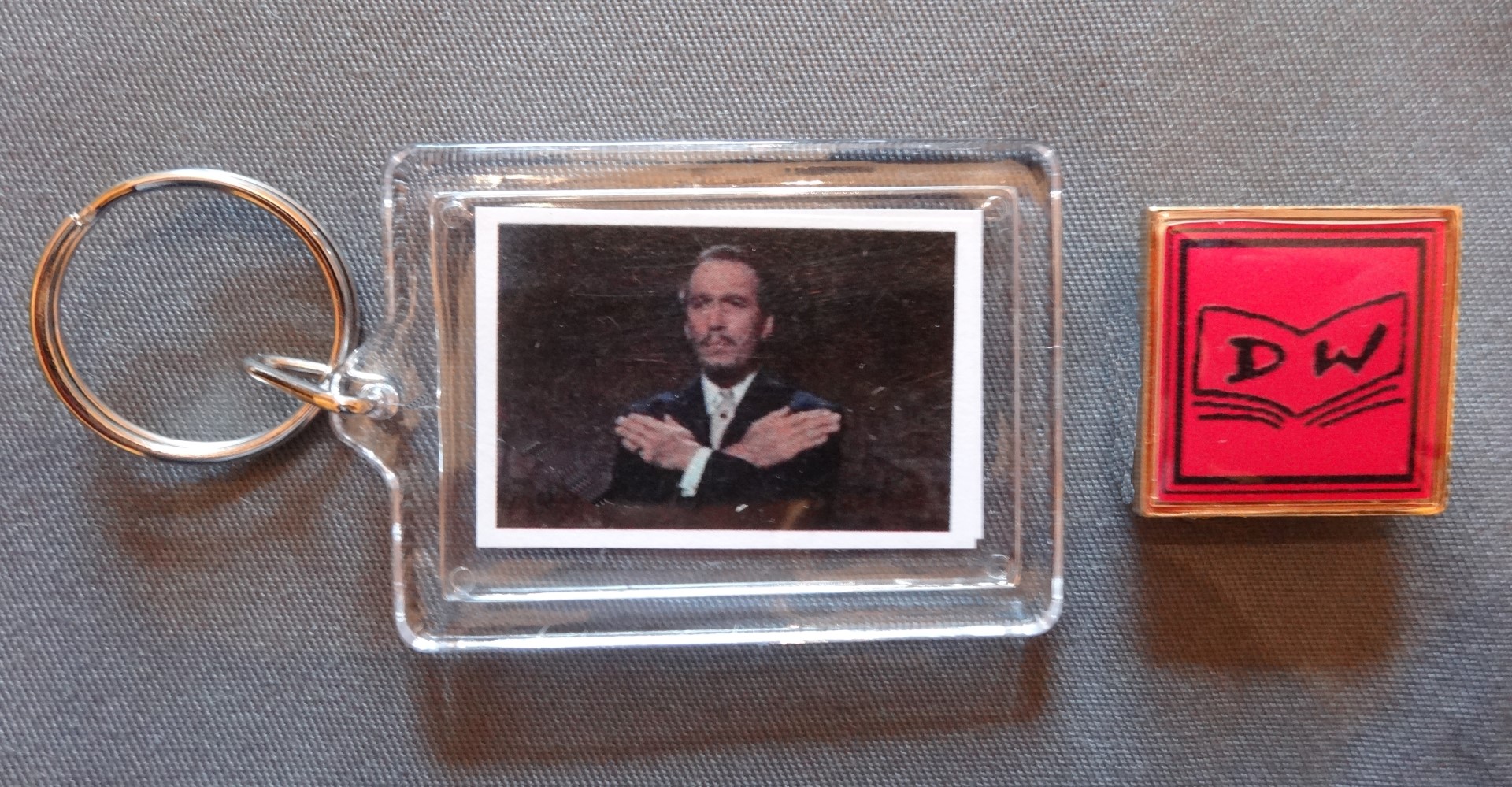 On the Friday night, after drinks at the bar, the ’vanguard’ settled down to dinner in the Regency Room, and once again Mary G regaled those present with gifts - specially made DW lapel badges and ‘The Devil Rides Out’ key fobs. Thank you, Mary for your generosity !