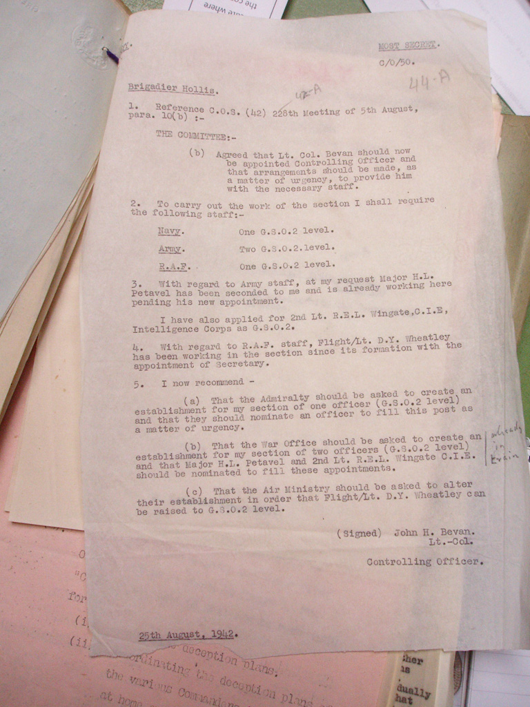 Bevan quickly saw then his two man team (at this stage it was just DW and himself) was ineffectual. He had the Chiefs of Staff issue a directive setting out the section's powers and authority, and moved them down from their palatial rooms in the Cabinet Office into the basement war rooms.